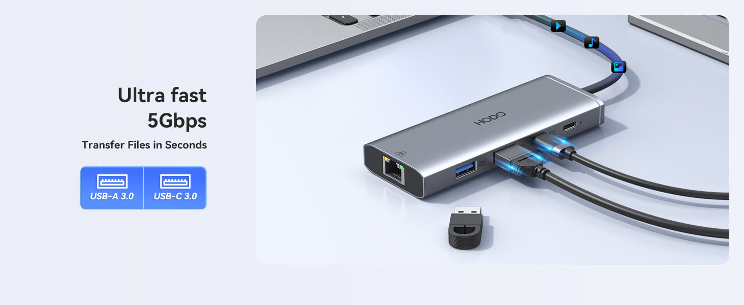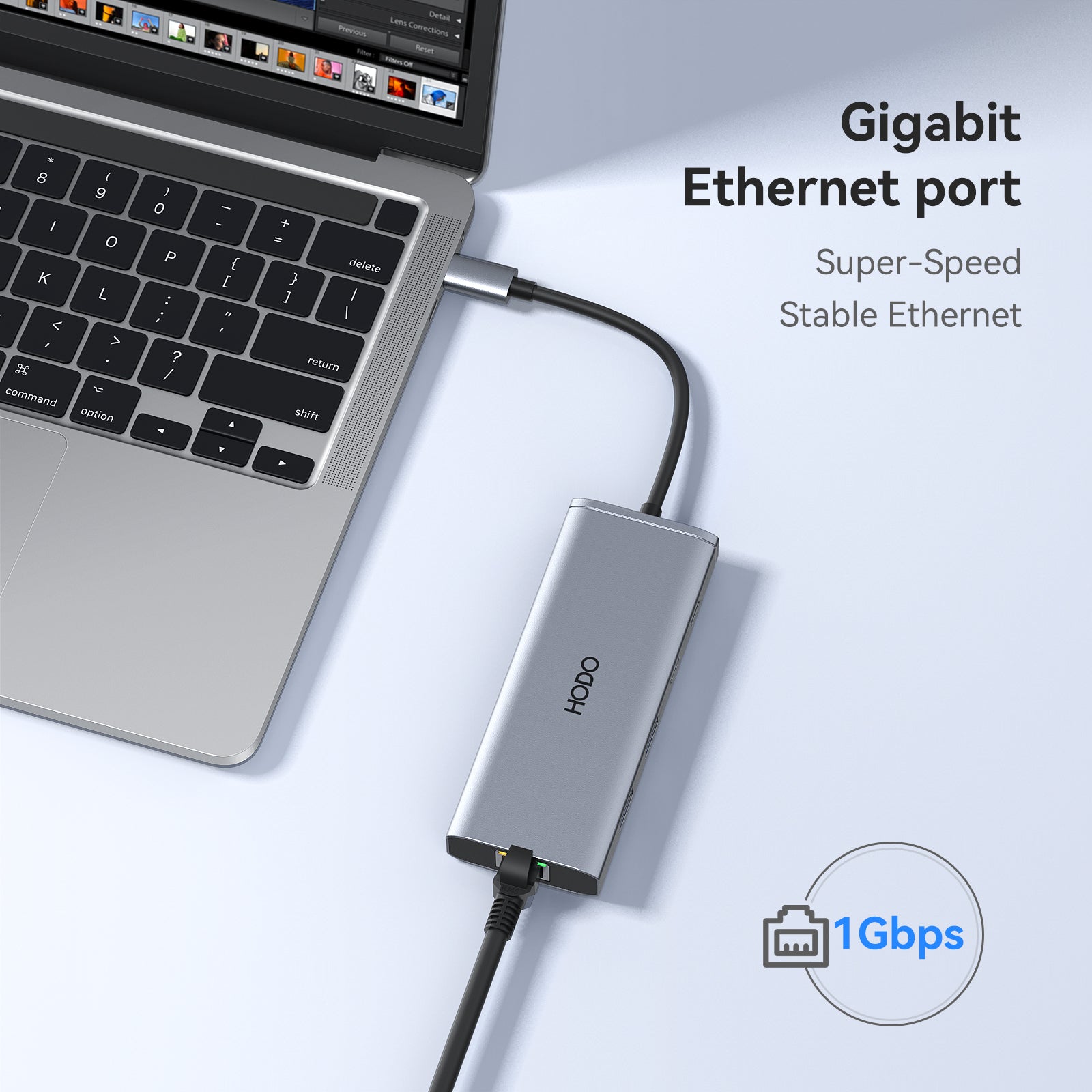 - 【Dockingstation USB-C Gigabit Ethernet】Dieser USB C Hub Ethernet Anschluss unterstützt 10/100/1000Mbps Lan Netzwerke, schließen Sie einfach ein Ethernet-Kabel an, Sie können die ultraschnellen Gigabit-Ethernet-Geschwindigkeiten und die Zuverlässigkeit einer kabelgebundenen Verbindung direkt genießen.