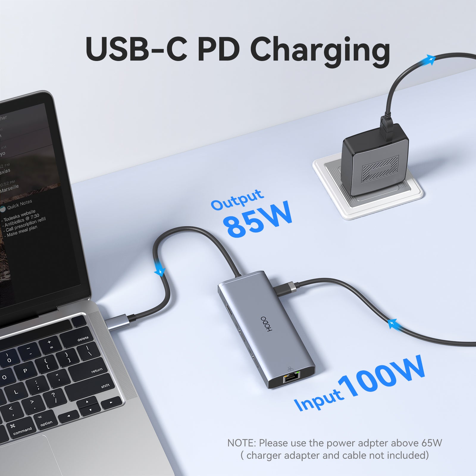 - 【100W PD Ladeanschluss】Diese Dockingstation unterstützt Sie beim Aufladen Ihres Laptops mit einer Leistung von bis zu 100W, während Sie mehrere Peripheriegeräte anschließen und sich keine Sorgen um die Energiespeicherung machen müssen