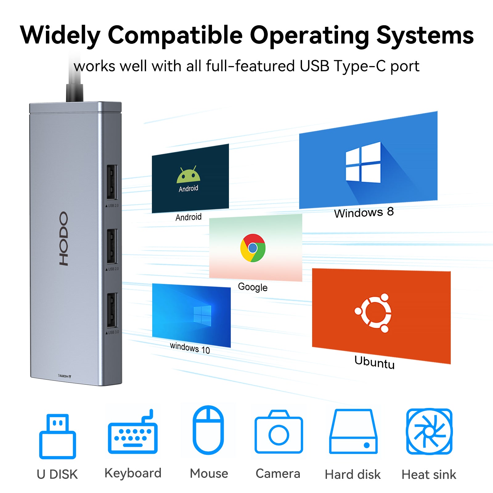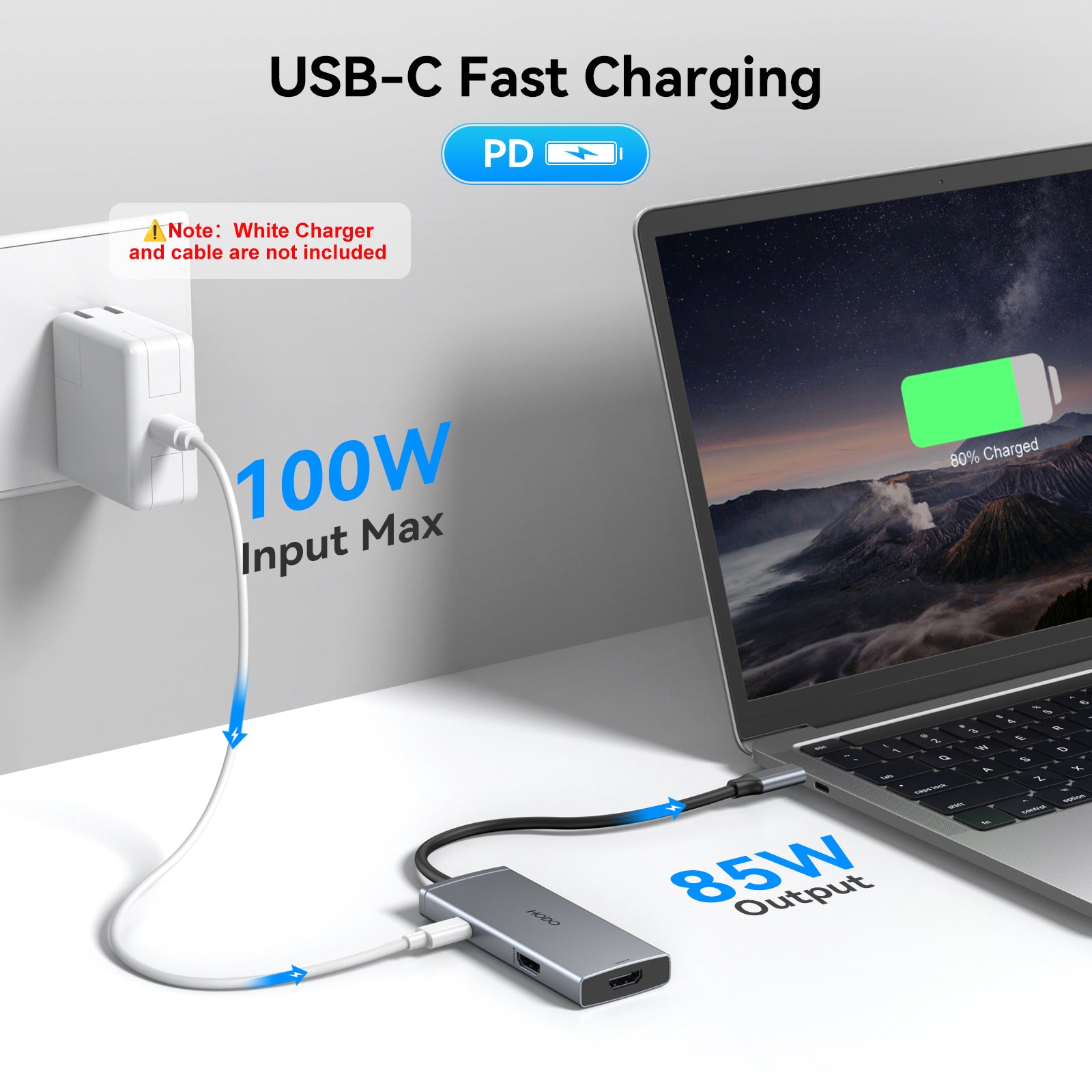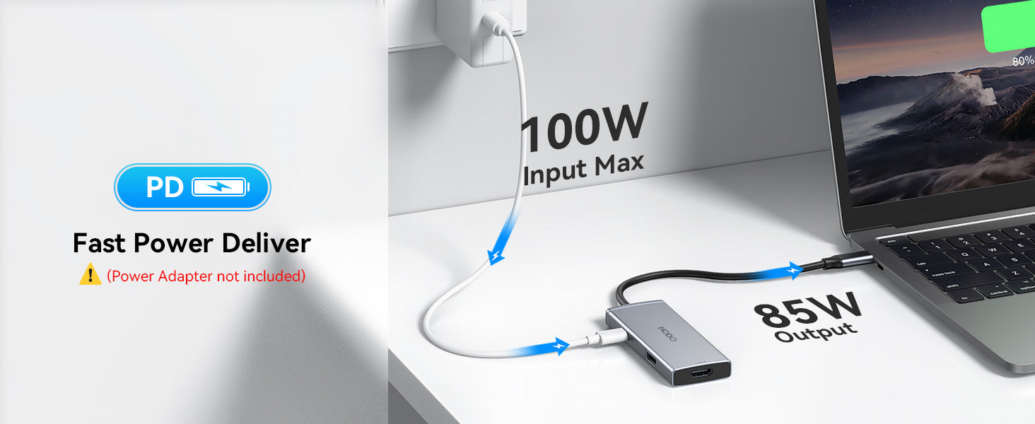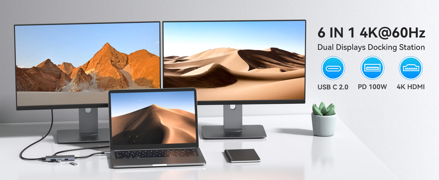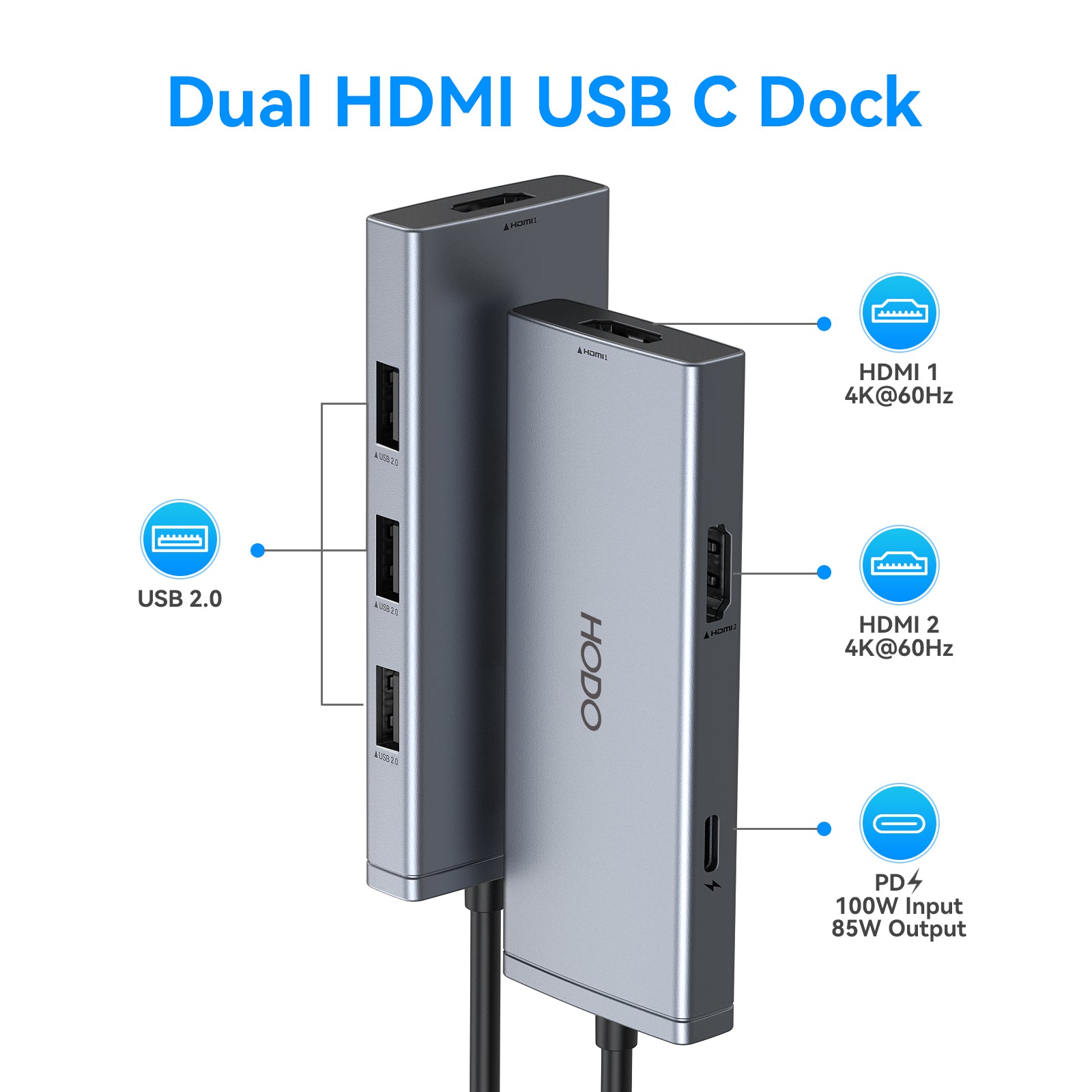 Dual HDMI Adapter for 2 Monitors( 6 in 1): Equipped with 2 HDMI(4K @60Hz), 3 USB 2.0, and 100W power delivery port. An ideal usb c multiple monitors adapter for new usb c/type c/thuderblolt 3/4 laptops.